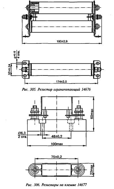 Внешний вид резистора на клемме 14677 (черт. 14677-00-00) приведен на рис. 306.