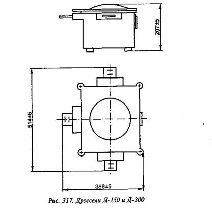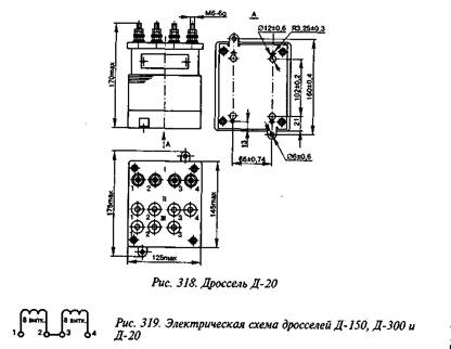 Внешний вид дросселей Д-150 и Д-300 приведен на рис. 317, дросселя Д-20 — на рис. 318.