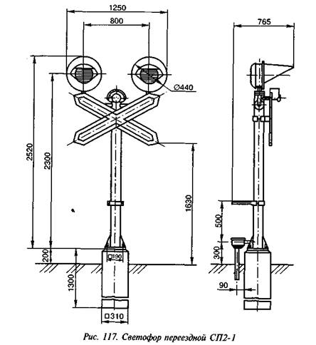 Переездные светофоры устанавливаются на бетонных фундаментах, черт. 12843-00-00А (рис. 115, д).