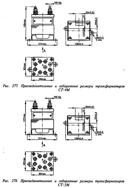Присоединительные и габаритные размеры трансформаторов приведены: СТ-ЗМ на рис. 276, СТ-4М на рис. 277, СТ-5М на рис. 278.