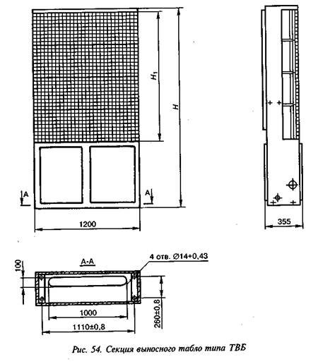 Секция табло СТБУ оформлена в виде прямоугольного корпуса, изготавливаемого из листовой стали, согнутой в специальный профиль. На лицевой стороне закреплена сота, в которой устанавливаются субблоки и блоки. Для удобства монтажа и обслуживания на обратной стороне, а также в нижней части лицевой стороны секции имеются съемные шиты, снабженные пломбировочными винтами.