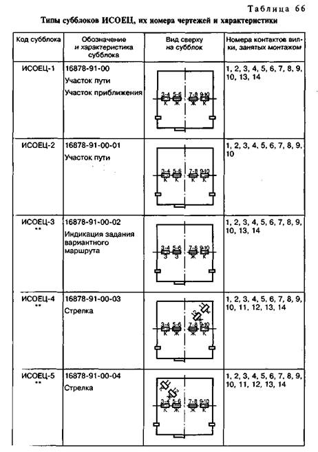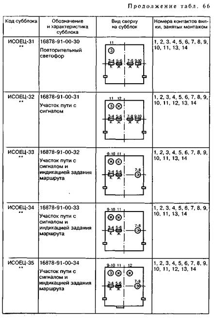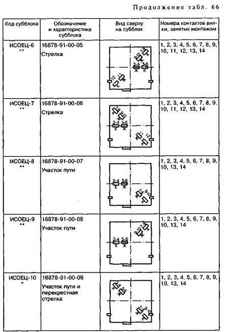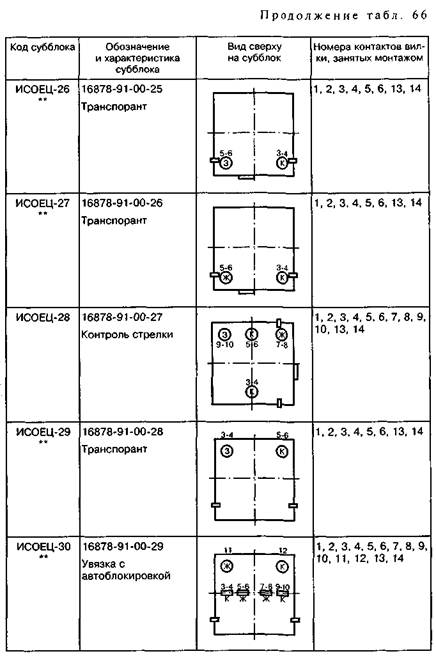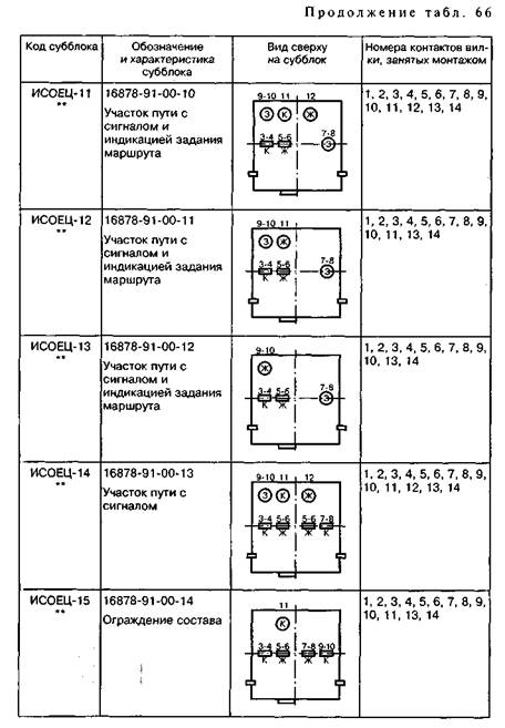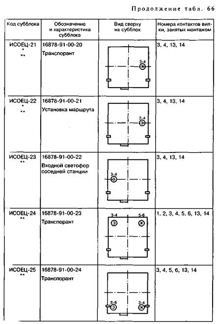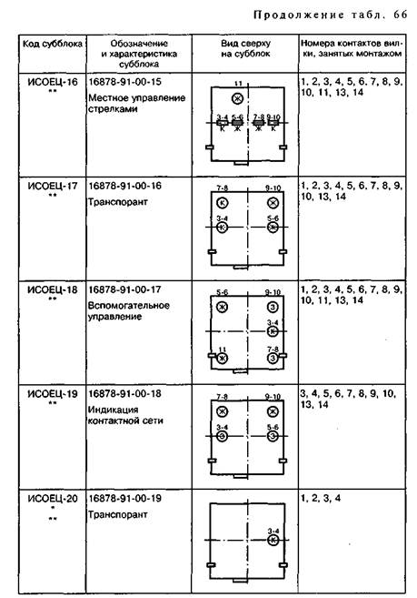 Таблица 61 Нумерация контактов блоков коммутаторов КМТБ-4фт и КМТБ-2фт