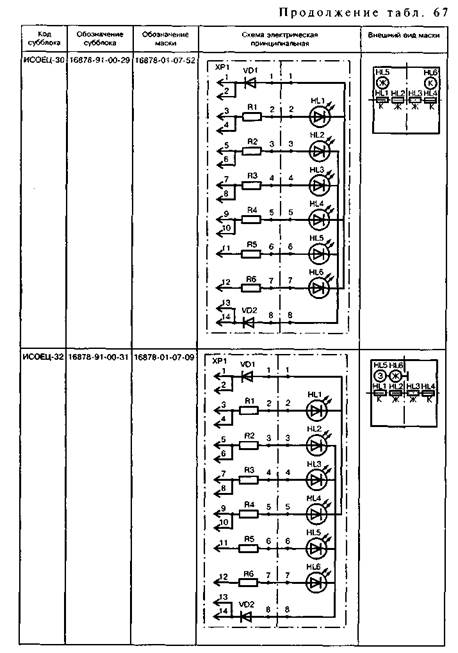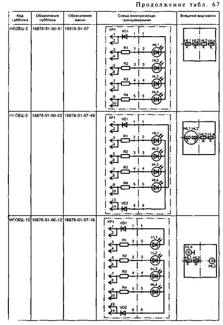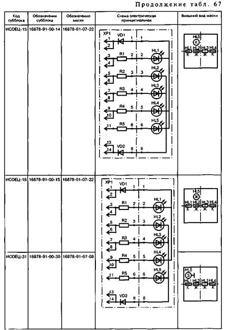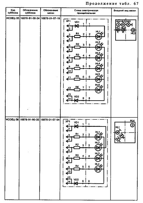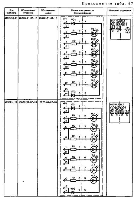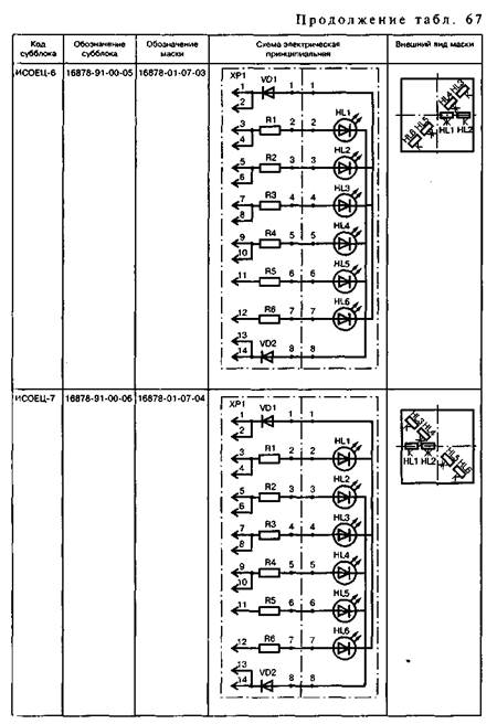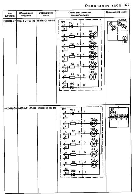 Для создания светосхемы пультов наклонных применяются те же 38 субблоков ИСОЕЦ, те же блоки кнопок и коммутаторов, что и в ранее описанных пультах-табло с субблоками на светодиодах типа ППНБМ.