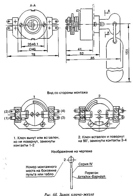На боковинах пульта-табло предусматривается установка замков ключей-жезлов без электрозащелки и с электрозащелкой.