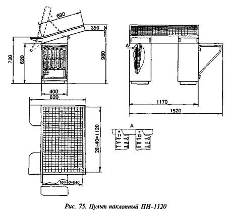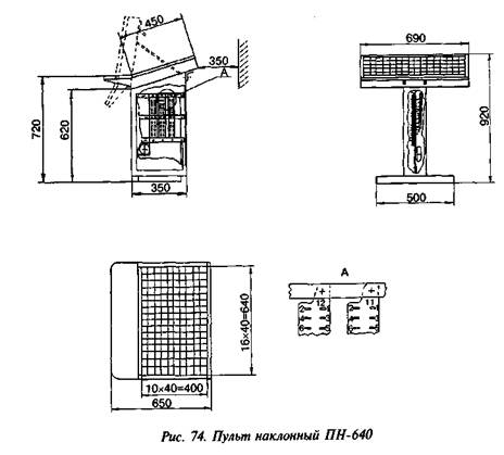 Некоторые конструктивные особенности. Внешний вид пульта наклонного ПН-640 (черт. 17358-00-00) приведен на рис. 74, ПН-1120 (черт. 17354-00-00) — на рис. 75.