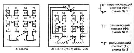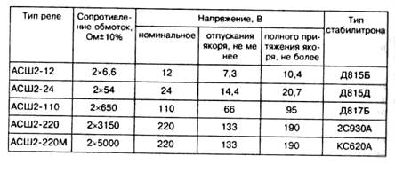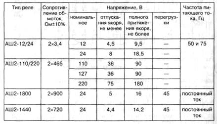 Контакты реле АСШ2-12 и АСШ2-24 должны обеспечивать 100 000 переключений каждым тройником цепи постоянного тока 4 А, 24 В.