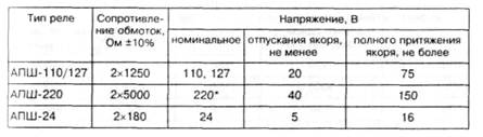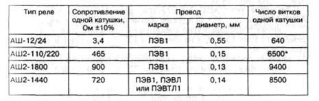* Каждая из обмоток реле АШ2-110/220 имеет средний вывод от 4700-го витка.