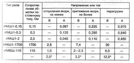 Каждый замыкающий и размыкающий контакт реле НМПШ-400 и НМПШ-2500 должен обеспечивать не менее 2 000 000 включений и выключений электрических цепей постоянного тока 2 А, 12 В.