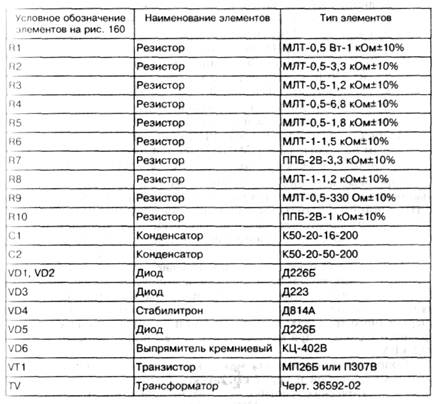 Наименование и тип элементов, примененных в реле РНП, приведены в табл. 140.