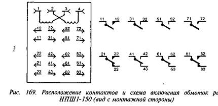 Схемы соединения обмоток реле показаны на рис. 167. При последовательном соединении обмоток на розетке реле устанавливается перемычка между выводами 2—3.