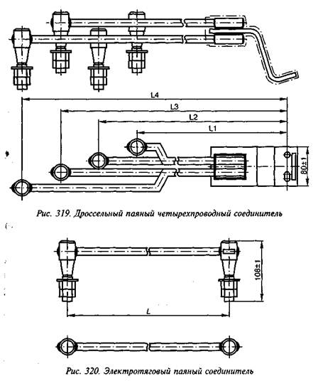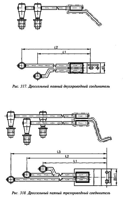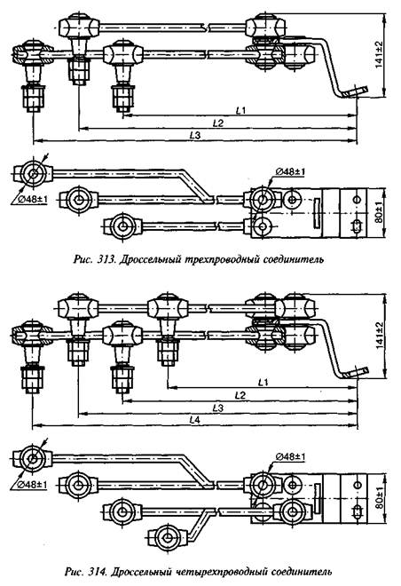 Длины междроссельных сталеалюминиевых соединителей, изображенных на рис. 311, приведены в табл. 275.