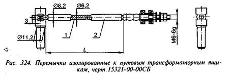 Конструкция изолированной перемычки к путевым ящикам приведена на рис. 324, где 1 — канат; 2 — трубка изоляционная.