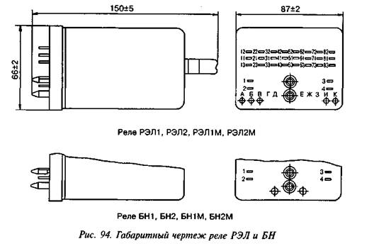 — РЭЛ1, РЭЛ2 — штепсельные нормальнодействующие постоянного тока;
