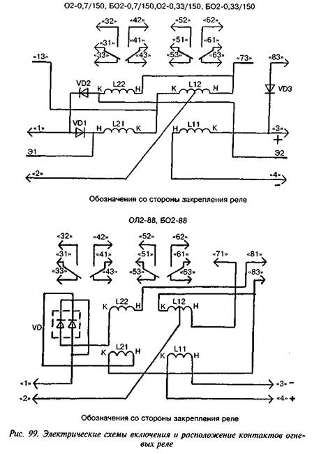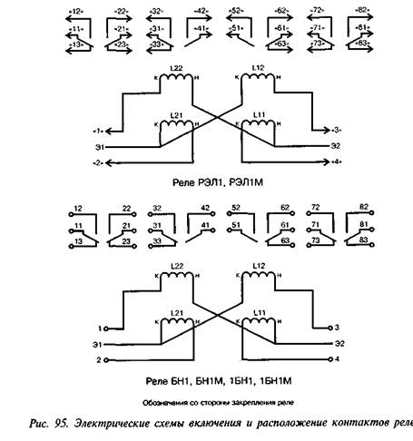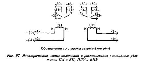 Расположение контактов реле приведено на рис. 97. Контакты реле должны обеспечивать: