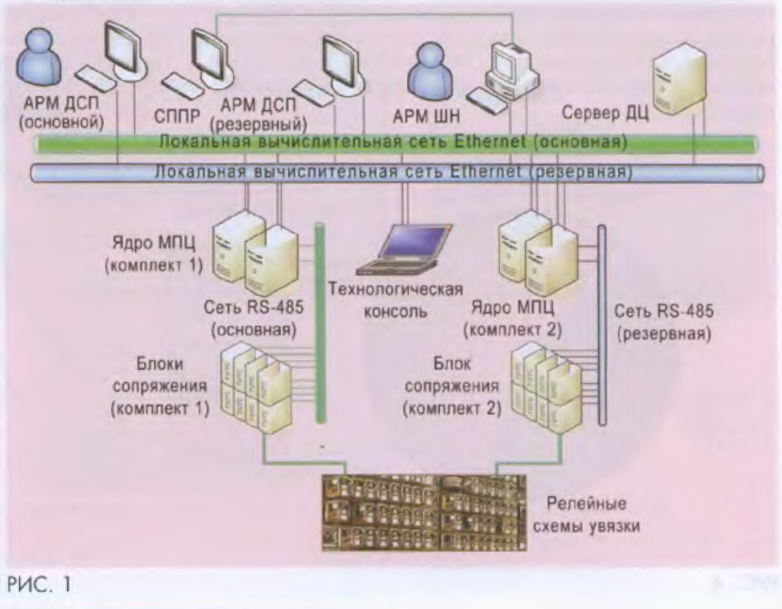 Тема: [Статья] Микропроцессорная централизация стрелок и сигналов МПЦ «IПУТЬ»Микропроцессорная централизация стрелок и сигналов МПЦ «IПУТЬ» К.А. БОЧКОВ, проректор по научной работе БелГУТа. доктор техн. наук А.Н. КОВРИГА, заведующий кафедрой «Автоматика и телемеханика», канд. техн. наук С.Н.ХАРЛАП, заместитель руководителя испытательной лаборатории, канд. техн. наук A.В. ЛОГВИНЕНКО. младший научный сотрудник B.И.ШУМСКИЙ, заместитель начальника Конструкторско-технического центра Белорусской дороги В настоящее время на Белорусской дороге эксплуатируется значительное число систем железнодорожной автоматики и телемеханики с истекшим сроком амортизации. Основной объем работ по внедрению систем ЖАТ пришелся на период 1970-1985 гг. Экспертиза технического состояния, оценка остаточного ресурса и продление сроков эксплуатации лишь отодвигают решение проблемы переоснащения системами ЖАТ. При этом темпы переоснащения существенно ниже темпов старения. Существующие релейные системы заменяют микроэлектронными и компьютерными системами управления движением поездов. Эксплуатационные расходы на их обслуживание ниже, и даже при более высокой стоимости внедрение таких систем экономически выгодно. Микроэлектронные системы имеют более высокие эксплуатационные показатели благодаря резервированию отдельных элементов и развитой диагностике. Их функциональные возможности расширяются за счет информационной поддержки оперативного персонала (нормативной и справочной информации), а также они просто интегрируются с системами управления движением поездов более высокого уровня. Чтобы обновить системы ЖАТ, необходимо разработать собственные микроэлектронные, отвечающие современным требованиям, или приобрести зарубежные. Каждый из этих путей имеет свои достоинства и недостатки. Так, прогнозируемый срок разработки собственной системы МПЦ значителен и отсутствует уверенность в положительном результате. Но кроме прямого экономического эффекта (снижения стоимости и эксплуатационных расходов) есть преимущества, это: организация производства на отечественных предприятиях, обучение персонала, техническое обслуживание и сопровождение собственными силами, обеспечение экономической независимости. повышение экспортного потенциала и др. Благодаря внедрению зарубежных систем можно достаточно быстро при наличии соответствующих средств модернизировать выработавшие ресурс системы ЖАТ. На Белорусской дороге имеется положительный опыт внедрения и даже организации производства современных систем ЖАТ, разработанных в России. При использовании западных систем приходится сталкиваться с проблемами адаптации, а также с вопросами, связанными с экономической и информационной безопасностью. В 2002 г было решено создать белорусскую микропроцессорную систему централизации стрелок и сигналов. Специалисты Научно- исследовательского института железнодорожного транспорта при Белорусском государственном университете транспорта, Конструкторско-технического центра Белорусской дороги. Брестского электротехнического завода исследовали возможность создания системы в кратчайшие сроки. Ее разработка была завершена в декабре 2006 г., а с мая 2007 г. МПЦ включена в опытную эксплуатацию на станции Ипуть. При разработке устройств сопряжения с исполни
