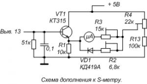 Спасибо за внимание к моей теме. Включение прибора S-метра я сделал по схеме: