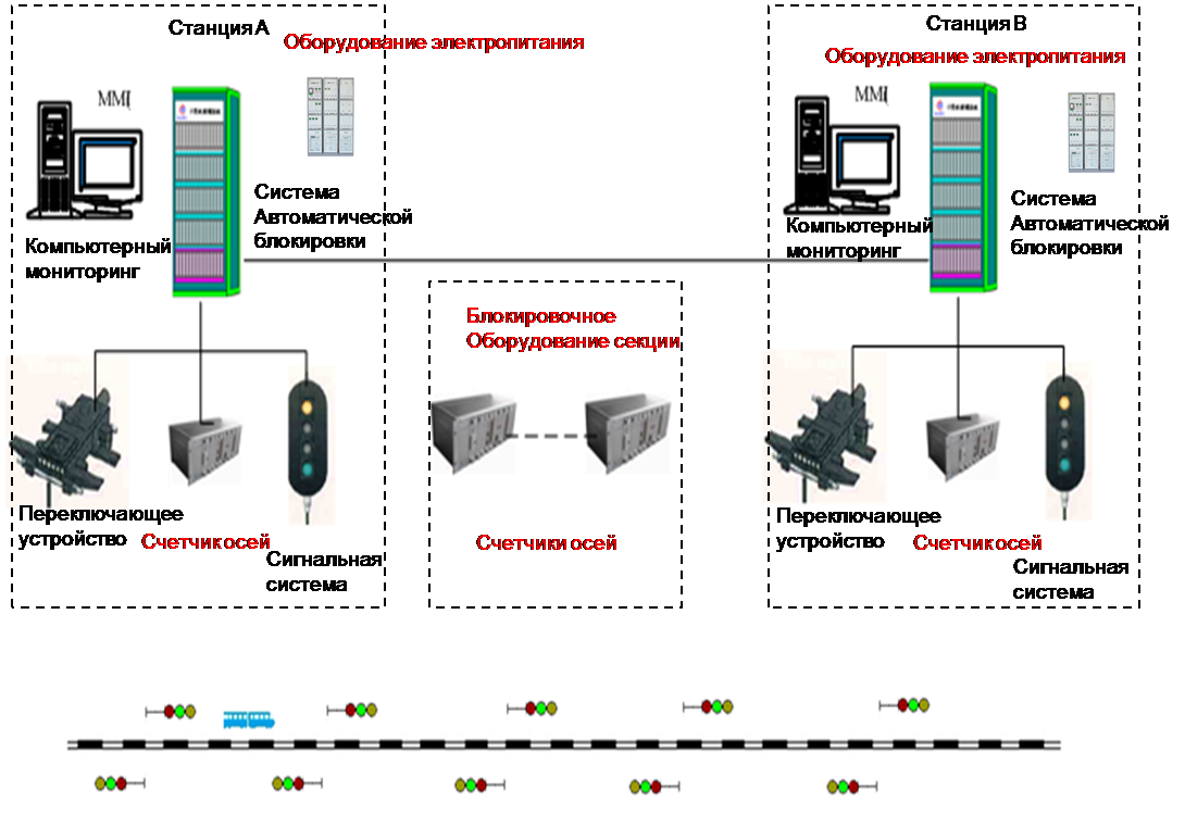 Подсистема автоматической блокировки станции (с помощью счетчиков оси) не допускает ситуаций ошибки диспетчера или ошибки машиниста поезда, когда поезд начинает следовать по неправильному маршруту. Данная подсистема проста в облуживании.