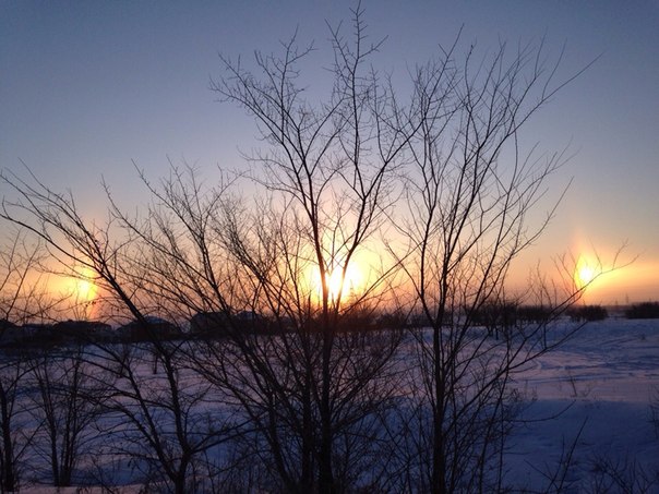 Жители Челябинска утром во вторник, 17 февраля, стали свидетелями необычного природного явления: на небе «взошли» сразу три солнца. Горожане начали выкладывать фотографии оптического феномена около 9 часов утра. По обе стороны от светила были видны довольно яркие пятна, похожие на солнечный диск.