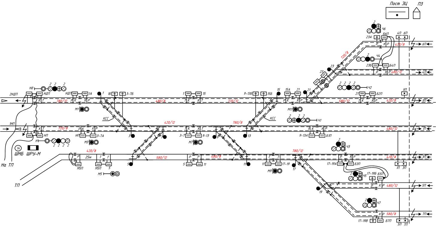 1) на главных 2) у входных 3) чередуем ФМ по одному из путей 4 ) на съездах по второму главному пути проставляем модулирующие отличные от ФМ в первом главном пути для схемы КСС 5) добиваемся на всей станции не менее двух секций между одноименными ФМ + ФН так лучче алгоритм? |