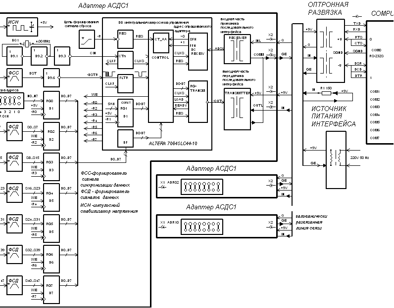 ![]() Принципиальная схема ![]() ![]() Последовательный интерфейс ![]() Вот что удалось найти в архиве. Просто инженер АиТ добавил 21.01.2016 в 10:23 Ещё была сделана одна разработка адаптера съёма дискретных сигналов. Несколько неудобно обрабатывать дискретные сигналы в компьютере, поэтому предварительную обработку отдали модулям съема, таким образом снятые сигналы можно было отдавать сразу в устройства связи (модем), не устанавливая компьютера на линейной станции. ![]() АСДК получалась слишком простой, быстро монтируемой и главное экономичной (стоимость АСДК одной станции не превышала $1000) и это была наша большая и самая главная ошибка! Никому не нужны дешевые системы.