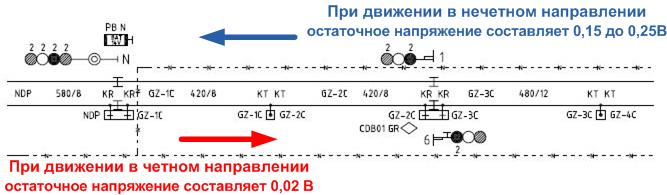 На станциях и перегонах оборудованных рельсовыми цепями тональной частоты неоднократно были зафиксированы случаи потери шунта под дрезиной. При расследовании отклонений от норм не обнаружено. Например: ![]() Измерения остаточного напряжения при наложении испытательного нормативного шунта со¬противлением 0,06 Ом. ![]() Измерения остаточного напряжения под дрезиной. ![]() Также замечено, что в одном направлении движении подвижной единице остаточное напряжение составляет 0,02 В., а в другом от 0,15 до 0,25В. Чем и как можно это объяснить? ![]() Вопрос в следующем: 1. Какие меры вы принимаете, для исключения пропадания шунта? 2. Какие проверки проводит комиссия при расследовании подобных случаев? 3. Есть смысл уменьшать напряжение на путевом приемнике, если значения в норме и рельсовая цепь отрегулирована согласно методике разработчика (НИИАС), а также если при наложении испытательного нормативного шунта со¬противлением 0,06 Ом значения не привышают 0,2 В ? 4. Какие факторы влияют на потерю шунтовой чувствительности для рельсовых цепей тональной частоты? Последний раз редактировалось Artjoms; 12.09.2012 в 15:27. |