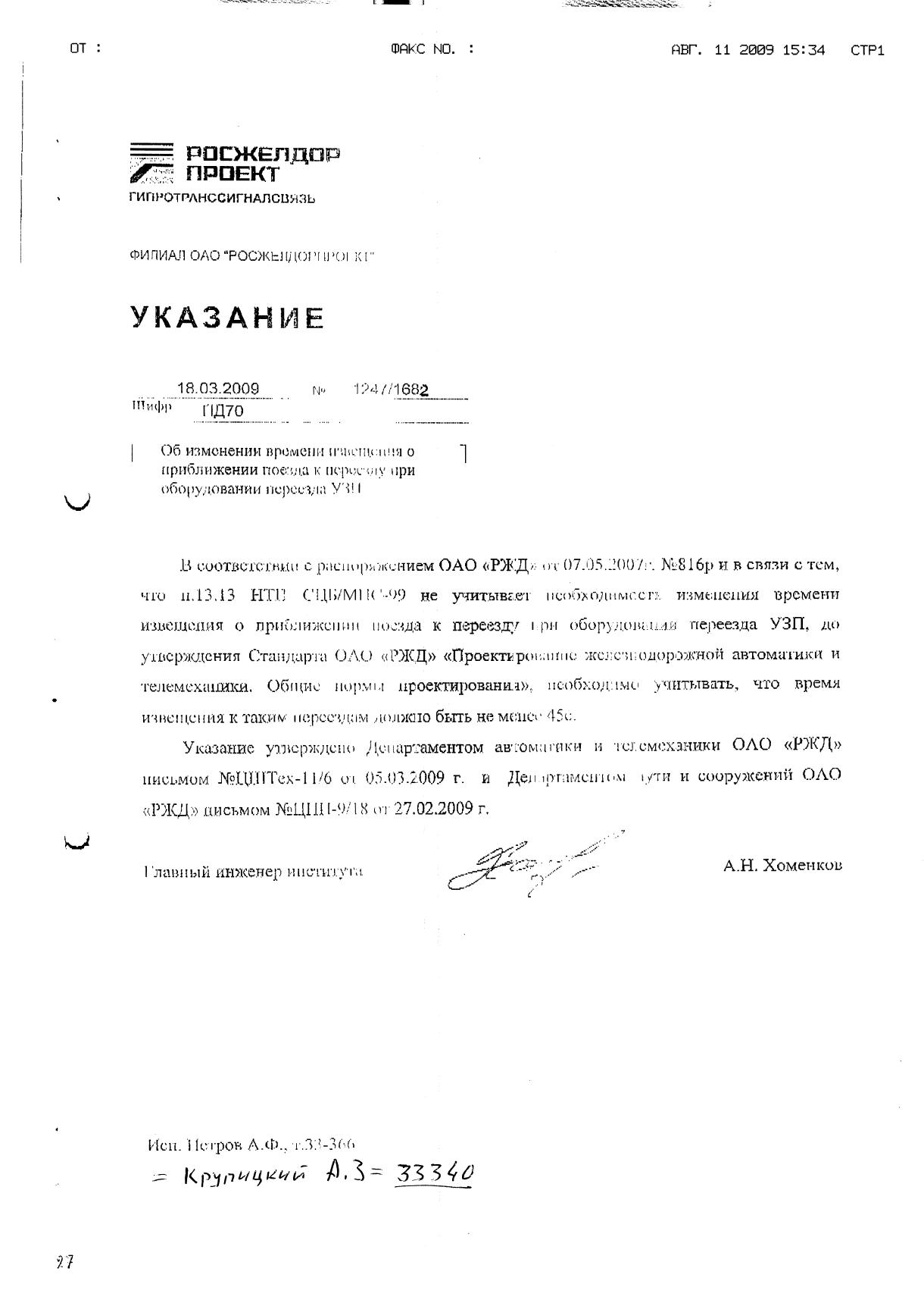 1) Время от начала включения переездной сигнализации до начала опускания заградительного бруса 13-15 секунд (норма записана в ТК №5.9.1 п. 3.5.2, а также 410407-ТМП альбом 3 стр.6 и далее по тексту). 2) Время поддержания бруса кнопкой «Открытие/Поддержание» не более 10 секунд (Приказ Минтранс России №237 от 31.07.2015г. Условия эксплуатации железнодорожных переездов п.59). 3) Время опускания бруса шлагбаума не более 10 секунд (939р от 17.04.2014 п.6.16). 4) Время между полным опусканием заградительного бруса и подъемом крышек УЗП от 7 до 13 секунд (939р от 17.04.2014 п.6.16). Максимальное время от начала включения переездной сигнализации до полного подъема крышек УЗП составляет 15+10+10+13=48 секунд. Таким образом, при расчетном времени извещения о приближении поезда к жд переезду 45 секунд (Приказ Минтранс России №237 от 31.07.2015г. Условия эксплуатации железнодорожных переездов, приложение 1) существует вероятность, что в момент вступления поезда на переезд крышки УЗП не будут подняты. Для исключения данного инцидента, предлагаю уменьшить норму времени от начала включения переездной сигнализации до начала опускания заградительного бруса до 10-12 секунд.
