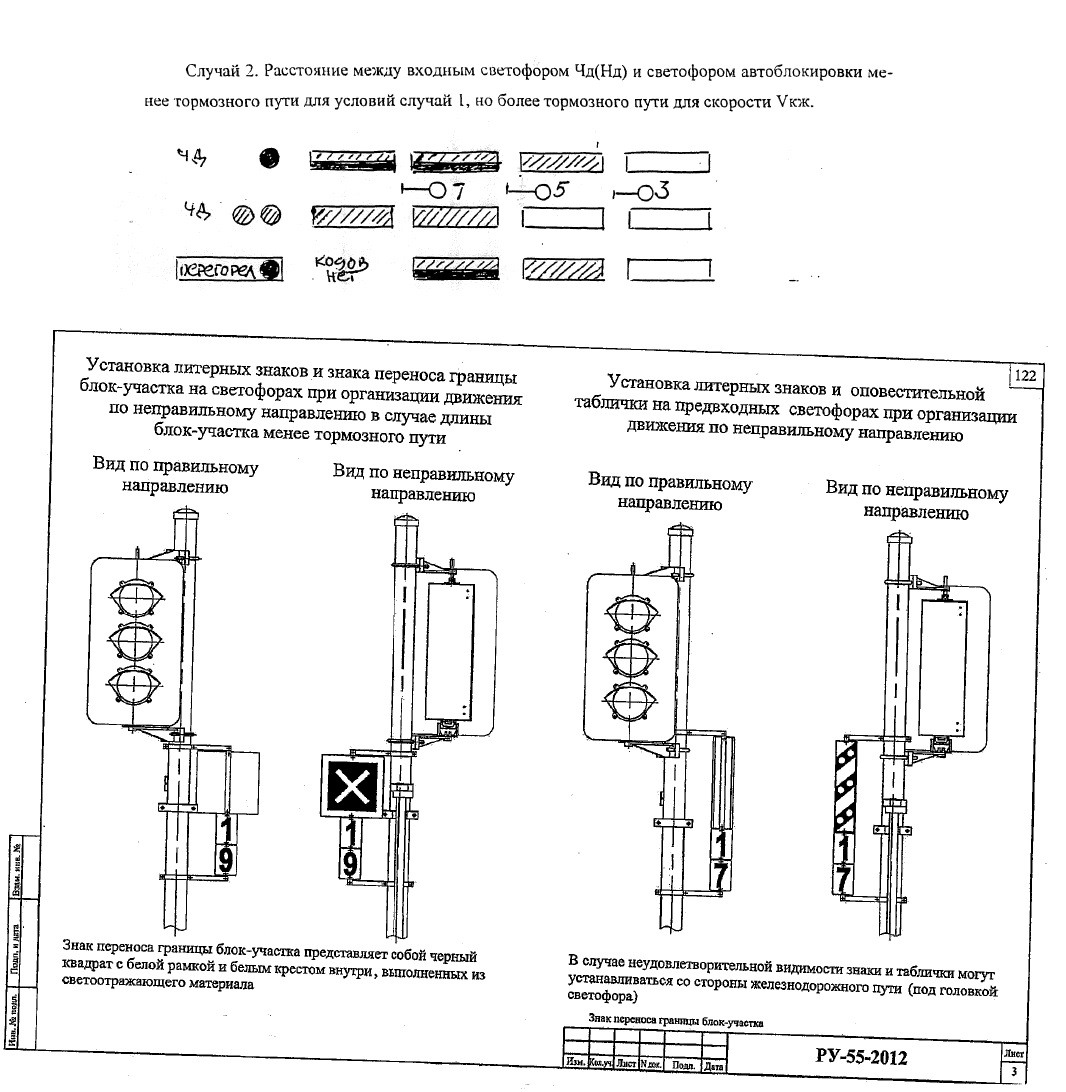 Я бы до выпуска разъяснений по приведению к РУ-55 не ставил бы знак переноса, это потянет за собой объединение блок-участков, в т.ч. схемы извещения как на станцию, так и на переезд, кроме того за хвостом будет защитный участок длиной в блок-участок, что делать с ним и как его организовывать пока не понятно, если предположить что мы объединили блок-участки, то тогда у нас при приближении поезда к ЧД от СУ7 тоже бескодие т.к. объединение, далее от СУ5 тоже бескодие т.к. согласно АБ-2-К-93 защитный длиной в блок-участок, в общем есть о чем подумать, а схемных решений пока нет.