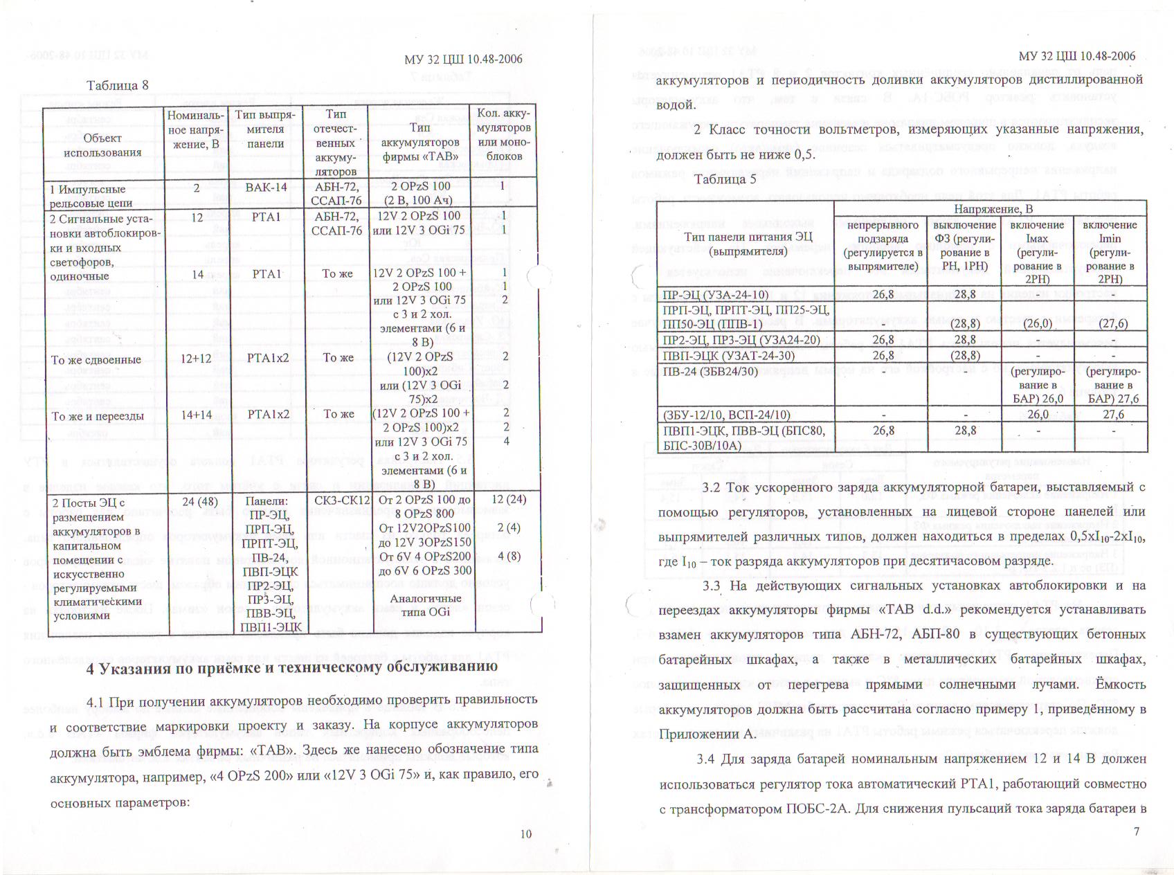 Ищу документ по соответствию типов аккумуляторов и зарядных устройств МУ 32ЦШ-10.48-2006 (возможно в номере ошибка)