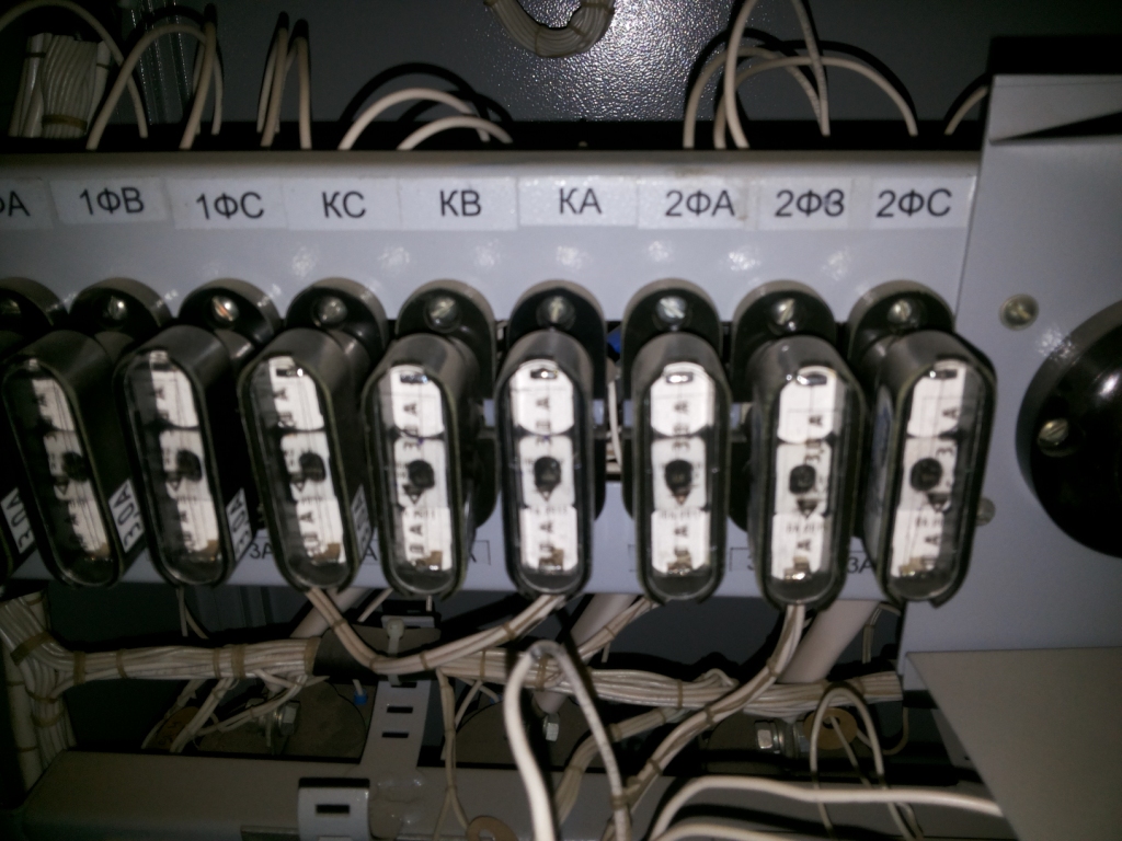 Тема: Схемы вводной панели ПВ1-ЭЦКСхемы вводной панели ПВ1-ЭЦК Общие сведения. Вводная панель ПВ1-ЭЦК предназначена для ввода, распределения, контроля и измерения переменного тока номинальным напряжением 380/220 В от двух фидеров и резервного дизель-генератора в устройствах электропитания электрической централизации (ЭЦ) крупных станций с числом стрелок до 170. В зависимости от максимального тока, потребляемого от источников трехфазного переменного тока, панель выпускается с плавкими вставками в каждой фазе первого и второго фидеров на 63, 80,100 или 125 А. Панель обеспечивает: подключение двух фидеров трехфазного переменного тока, а также дизель-генераторной установки (ДГА) в качестве резервной электростанции; автоматическое переключение нагрузки с одного фидера на другой при выключении или нормируемом снижении напряжения в работающем фидере, а также переключение нагрузки на автоматически включаемую ДГА при выключении напряжения в обоих фидерах или в первом фидере; возможность работы в одном из двух режимов - в режиме преобладания первого фидера и в режиме равноценных фидеров; ручное переключение нагрузки с одного фидера на другой, отключение фидеров для ремонта приборов панели, а также ручной запуск ДГА; грозозащиту устройств электропитания ЭЦ; оптическую сигнализацию о работе фидера и оптическую и акустическую сигнализацию о выключении напряжения в фидерах; оптическую сигнализацию о запуске и работе ДГА; измерение фазных напряжений, токов и расхода электроэнергии в обоих фидерах; контроль исправности пускателей обоих фидеров и резервирование питания нагрузки от фидера с исправным пускателем или ДГА; контроль правильности чередования фаз обоих фидеров и исключение подключения нагрузки к фидеру с неправильным чередованием фаз при наличии напряжения переменного тока на нагрузке от другого фидера или ДГА; подсчет количества выключений фидеров, контроль перенапряжения и одновременного выключения двух фидеров питания на время более 1,3 с; вывод пониженных изолированных фазных напряжений двух фидеров для контроля их в аппаратуре АРМ; оптическую и акустическую сигнализацию о перегорании предохранителей и срабатывании автоматических выключателей. Технические характеристики Фазные напряжения, контролируемые панелью, В: отключения источника................................187 ± 4 минимальное включения источника.....................198 ± 4 контроля перенапряжения.............................от 250 до 257 Интервал времени, с, при котором включается контроль одновременного выключения фидеров..........1,3—1,5 Интервал времени, мин, через который нагрузка подключается к включаемому фидеру: при наличии напряжения от другого фидера или ДГА......1,3—1,4 при отсутствии напряжения на нагрузке .................0 (без задержки) Номинальное фазное напряжение, подаваемое для контроля в аппаратуру АРМ, В..................................6,3 Максимально допустимые фазные токи нагрузок, А: панели питания......................................90 негарантированные освещение и силовая нагрузка ........32 гарантированные освещение и силовая нагрузка ..........15 маневровые посты....................................15 связь ...............................................32 ![]() ![]() Схема включения индикаторов и измерительных приборов панели ПВ1-ЭЦК ![]() ![]() ![]() Мнемосхема панели ПВ1-ЭЦК ![]() Расположение оборудования панели ПВ1-ЭЦК