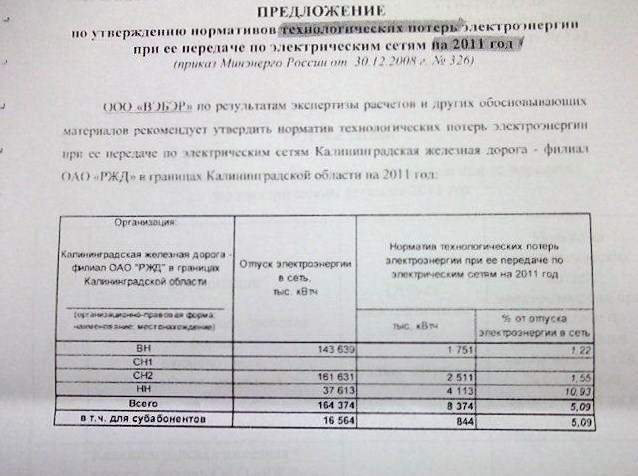 С огромным удивлением замечаю, что при предъявлении расходов по электроэнергии в ШЧ в разные месяцы применяют разный процент на потери технологические, несмотря на то, что этот показатель один и утвержден для Калининградской ж.д.: