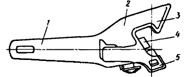 Тема: Конструкция автосцепкиКонструкция автосцепки В состав автосцепного устройства всех магистральных вагонов входит автосцепка СА-3 (рис. 46), состоящая из корпуса и механизма сцепления. Корпус автосцепки состоит из головной части 2 и хвостовика 1. Два зуба 3 и 5 головной части и зев 4 корпуса в плане имеют очертание, называемое контуром зацепления (ГОСТ 21447—75). Головная часть корпуса автосцепки плавно переходит в полый хвостовик, на конце которого предусмотрено отверстие для установки тягового клина. Торец хвостовика имеет цилиндрическую поверхность, что улучшает условия передачи усилий на упорную плиту при действии на автосцепку сжимающих сил и облегчает поворот автосцепки в плане. В конструкции модернизированного автосцепного устройства использована автосцепка с корпусом, отличающимся от корпуса типовой автосцепки СА-3. Хвостовик корпуса модернизированной автосцепки соединен с тяговым хомутом не клином, а валиком. Торец хвостовика имеет сферическую поверхность, соответствующую поверхности упорной плиты. Корпус автосцепки в модернизированном автосцепном устройстве снабжен специальным предохранительным кронштейном, приваренным снизу малого зуба. Когда разность уровней продольных осей сцепленных автосцепок достигает 145 мм, большой зуб одной автосцепки опирается на предохранительный кронштейн другой автосцепки, что препятствует их расцеплению. С введением предохранительных кронштейнов и подпружиненных опор для хвостовика нежесткая автосцепка СА-3 становится полужесткой. При взаимных перемещениях продольных осей сцепленных автосцепок по вертикали до 145 мм автосцепка является нежесткой, а при дальнейших перемещениях — жесткой. В ударной стенке зева расположены большое и малое окна соответственно для замка и замкодержателя. Со стороны малого зуба на головной части сбоку корпуса расположен прилив с отверстиями для валика подъемника и запорного болта валика. ![]() Рис. 46. Автосцепке СА-3 ![]() В головной части корпуса автосцепки размещен механизм сцепления (рис. 47), состоящий из замка 1, замкодержателя 4, предохранителя замка 5, подъемника 2, валика подъемника 3 и болта с гайкой и двумя шайбами. Замок механизма сцепления автосцепки расположен в кармане корпуса и опирается на соответствующую поверхность кармана радиальной опорой с фиксирующим зубом. Поворачиваясь вокруг этого зуба, замок может уходить внутрь корпуса под действием усилия со стороны автосцепки сцепляемого вагона или выходить из корпуса под действием собственного веса. Последнее может происходить в двух случаях: когда вагоны разведены или когда малые зубья корпусов сцепляемых автосцепок в контуре зацепления занимают крайнее положение. Если при этом механизмы автосцепок не установлены в положение «на буфер», то замки выдвигаются в пространство между малыми зубьями, что приводит к сцеплению автосцепок. На замке со стороны хвостовика корпуса предусмотрен сигнальный отросток, который выходит в специальное отверстие головной части корпуса, когда замок входит в карман. В верхней части замка размещен цилиндрический шип, на который навешен предохранитель, имеющий вид двуплечного рычага. В свободном состоянии предохранитель опирается своим верхним плечом на специальную полочку в корпусе автосцепки. Замкодержатель навешен на цилиндрический шип вн