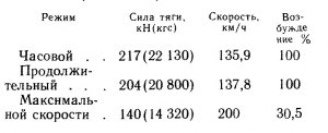 Тяговые параметры электровоза при передаточном отношении редуктора 1,786 и среднеизношенных колесах (1215 мм) :