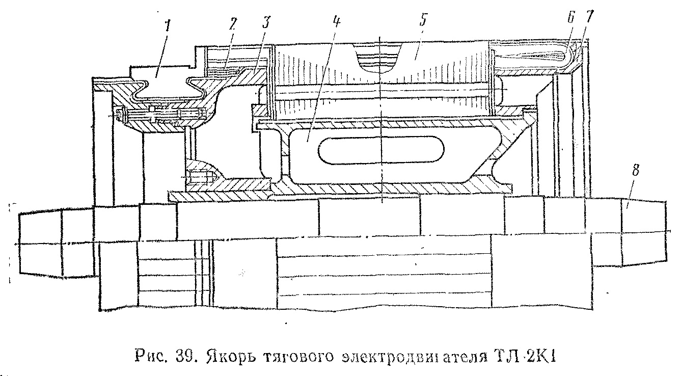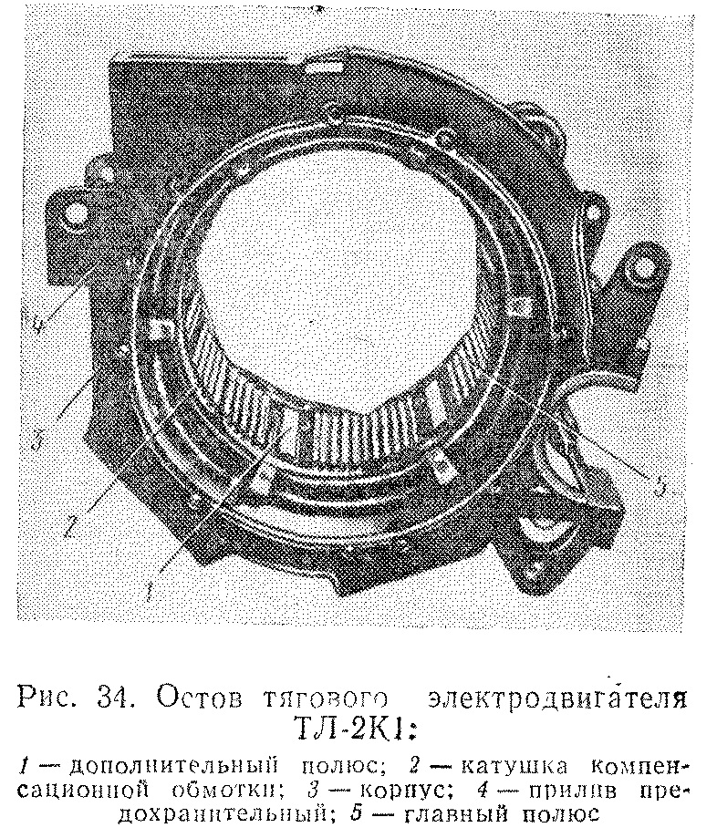 Конструкция. Тяговый двигатель ТЛ-2К1 состоит из остова 3 (рис. 33), якоря 6, щеточного аппарата 2 и подшипниковых щитов 1, 4.