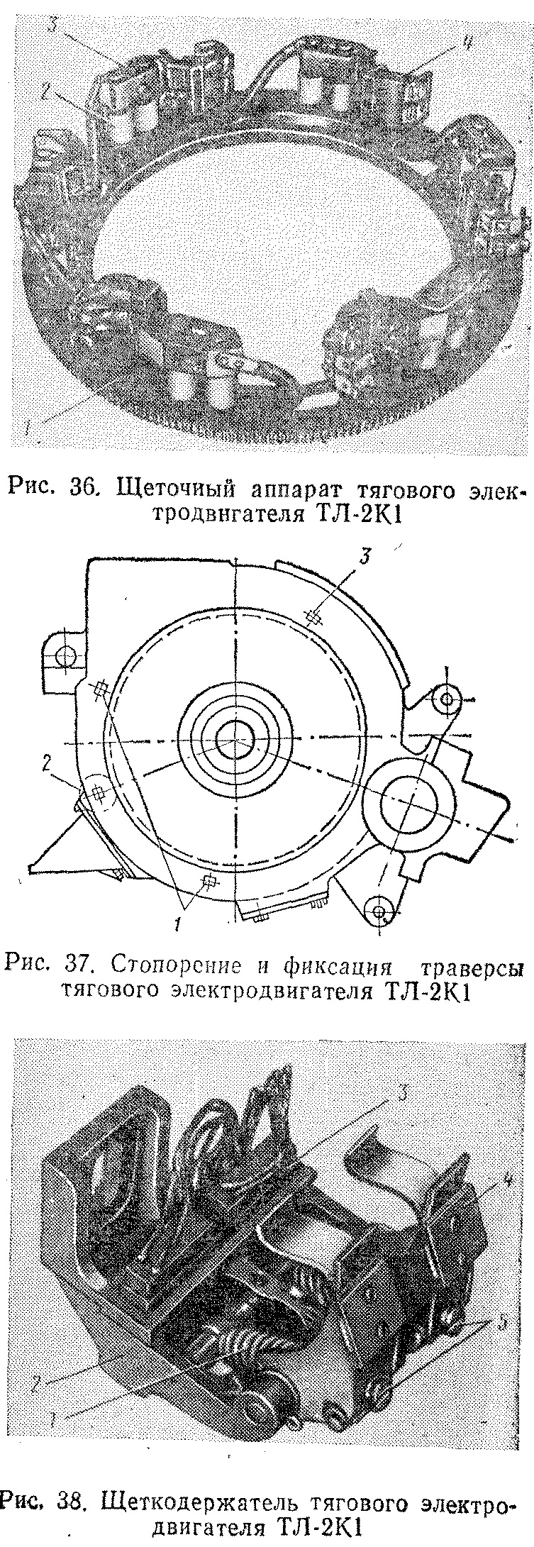 Щеточный аппарат тягового электродвигателя (рис. 36) состоит из траверсы 1 разрезного типа с поворотным механизмом, шести кронштейнов 3 и шести щеткодержателей 4.