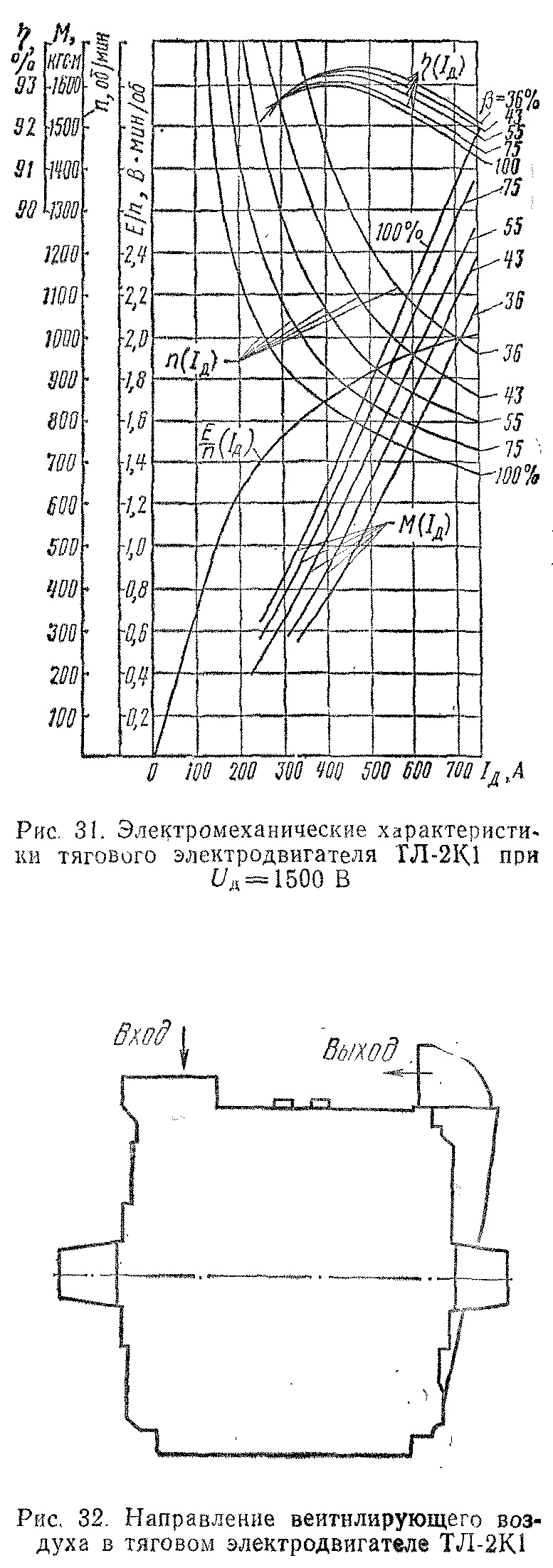 Система вентиляции независимая, аксиальная, с подачей вентилирующего воздуха сверху в коллекторную камеру и выбросом вверх с противоположной стороны вдоль оси двигателя (рис. 32). На электровозе установлено восемь тяговых электродвигателей. Технические данные двигателя ТЛ-2К1 следующие: