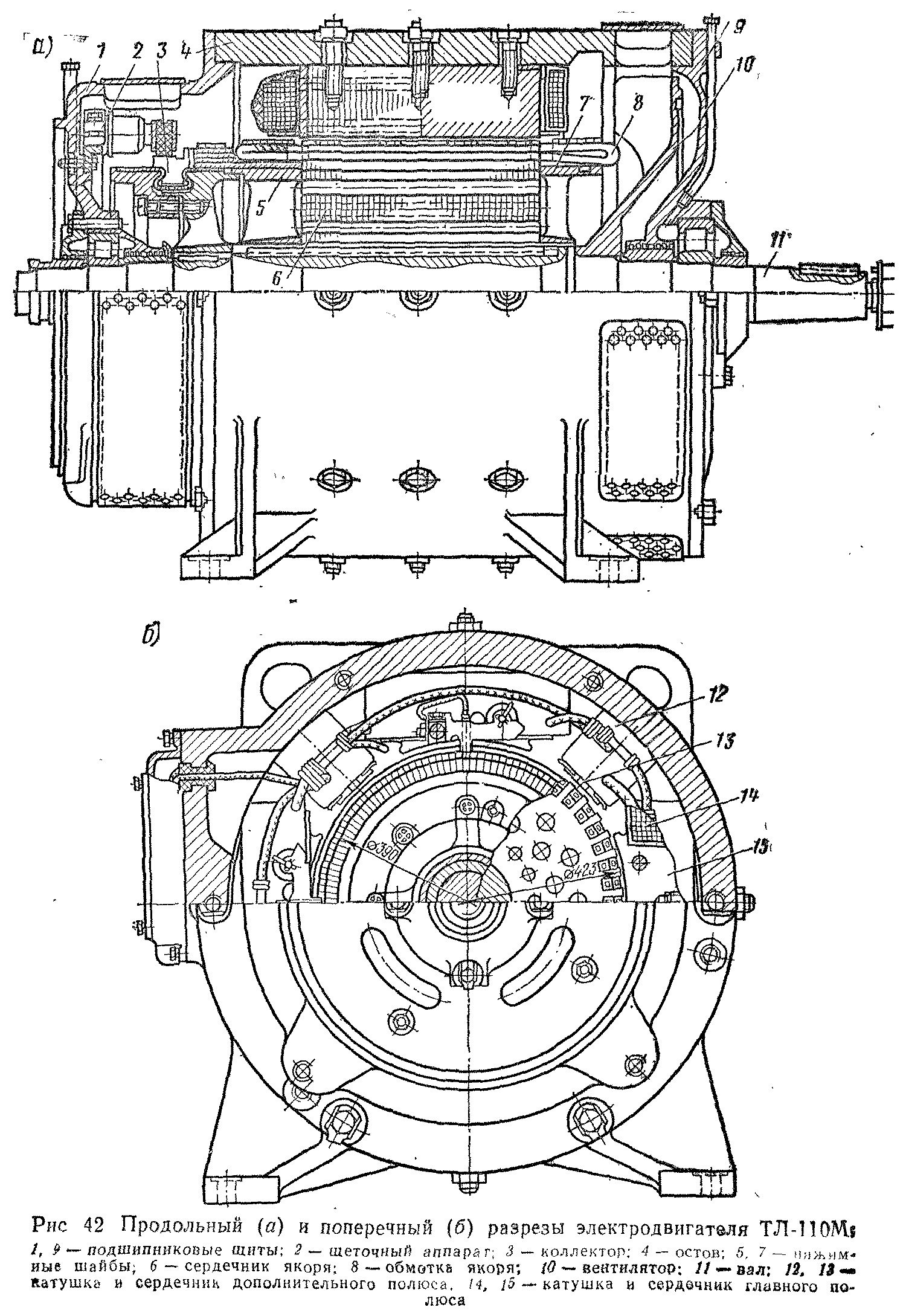 Конструкция. Электродвигатель ТЛ-110М (рис. 42, 43 и 44)
