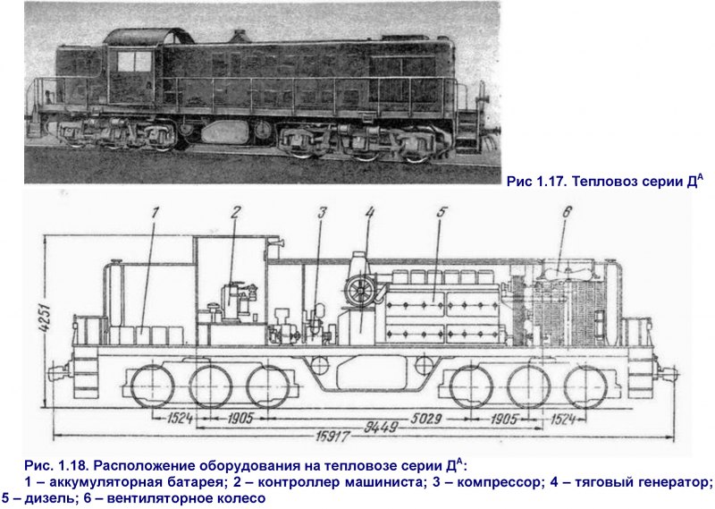 С начала 1945 г. в Советский Союз стали поступать тепловозы типа 0-30-0-0-30-0, построенные заводами АЛКО (экипажная часть, дизели) и фирмой Дженерал Электрик Компани (электрическое оборудование). Этим тепловозам было присвоено обозначение серии ДА, что означало: дизельный локомотив завода АЛКО. Первоначально полное наименование серии было ДА20, а с 1947 г. начало встречаться (как в литературе, так и на самих тепловозах) обозначение просто ДА (рис. 1.17 и 1.18).