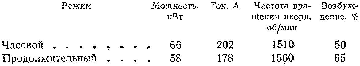 Максимальная частота вращения якоря 3260 об/мин. Вес тягового электродвигателя 630 кгс.