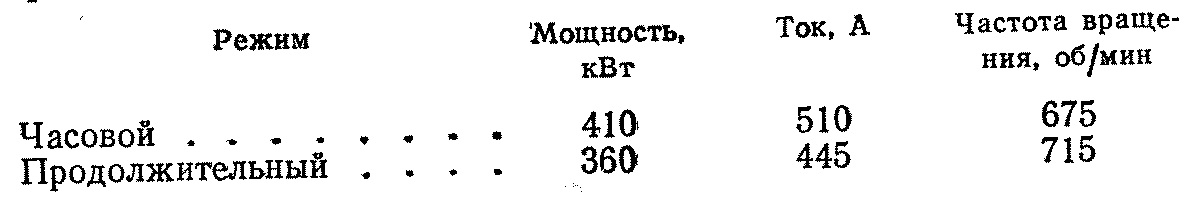 Наибольшая частота вращения якоря 1730 об/мин, вес электродвигателя 3100 кгс.