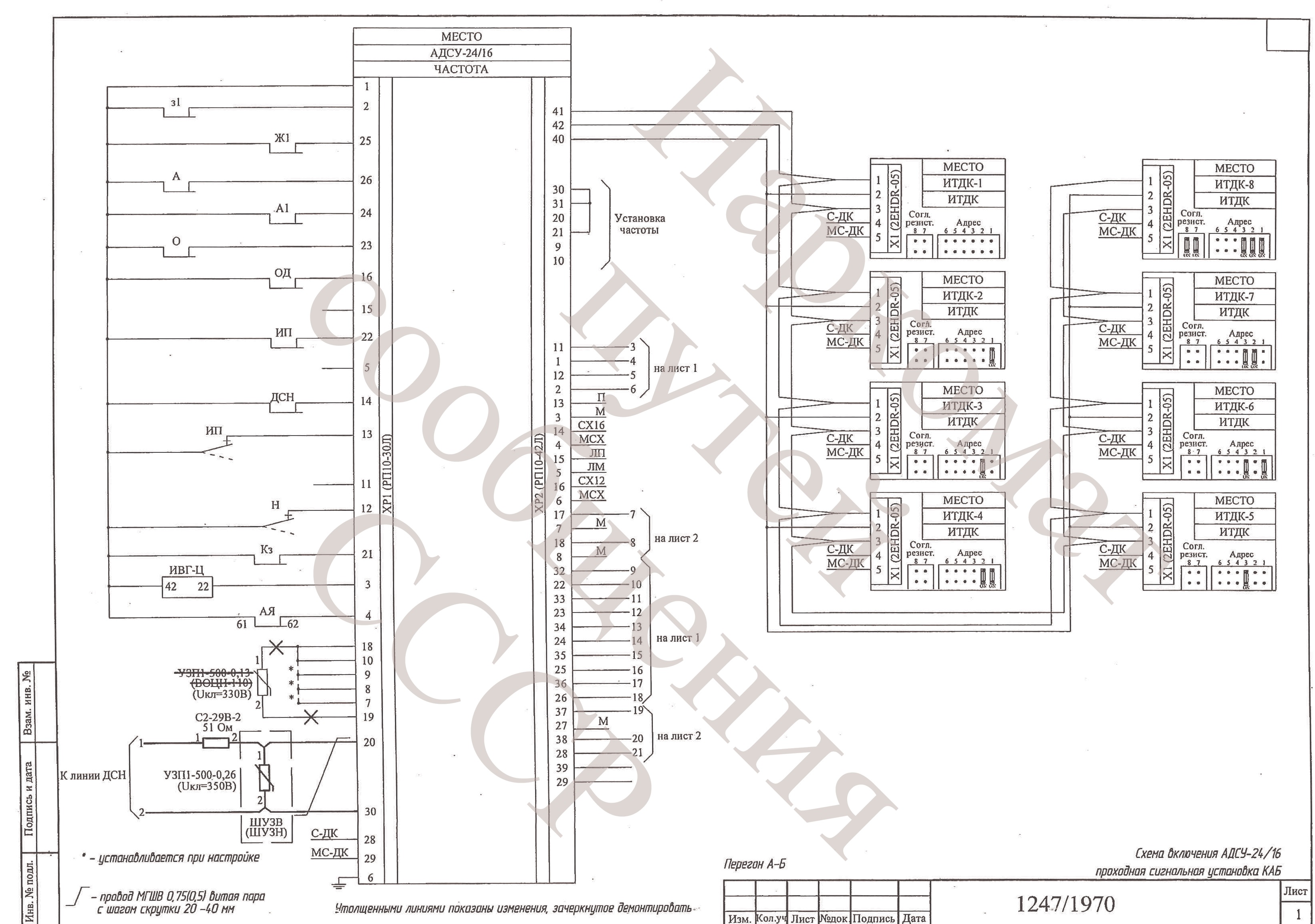 С целью увеличения: помехоустойчивости АДСУ-24/16 при воздействии импульсных перенапряжений, вызванных грозовыми и коммутационными явлениями, необходимо, согласно приложению, внести изменения в схему защиты выходов АДСУ-24/16 подключенных к линии передачи данных ДСН, ДК: