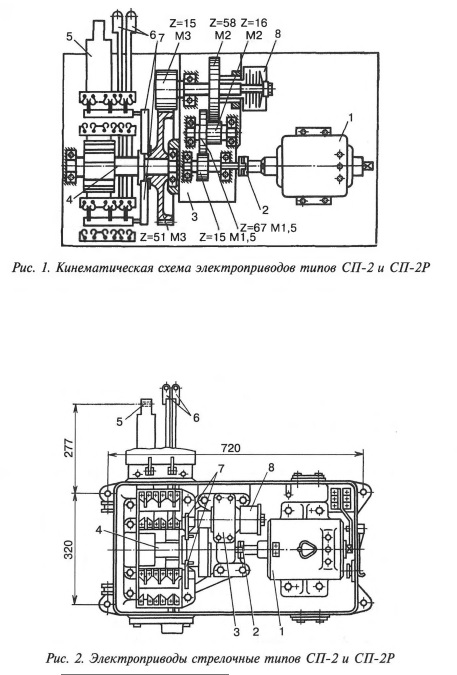 Кинематическая схема электроприводов типов СП-2 и СП-2Р приведена на рис. 1, а конструкция — на рис. 2.