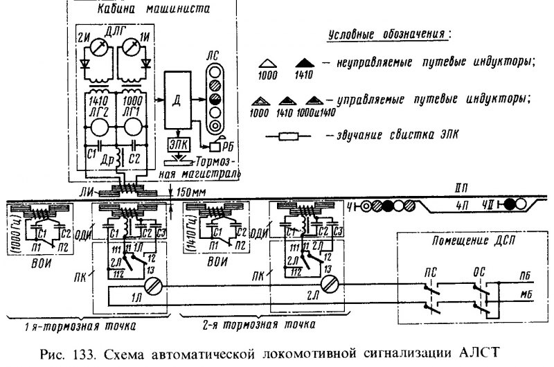 АЛСТ с использованием индукционного способа передачи информации с пути на локомотив (рис. 133).