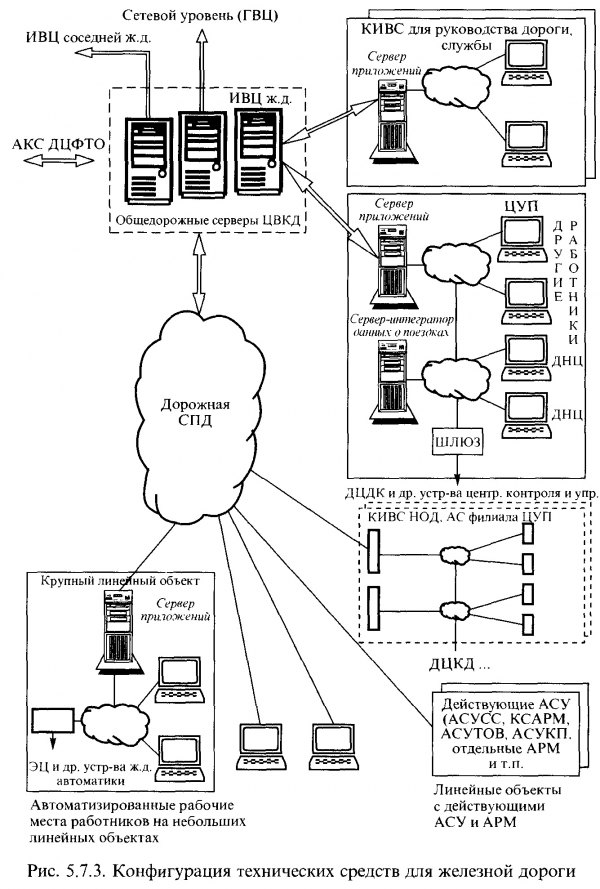 АРМ, обеспечивающих реализацию функций в области управления перевозками. Эти АРМ могут объединяться в комплексные информационно-вычислительные сети (КИВС), увязанные с серверами ГВЦ и ИВЦ железных дорог.