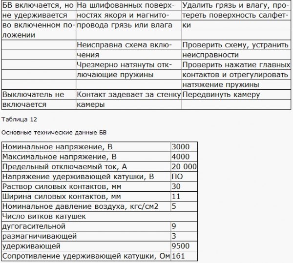 Характерные неисправности быстродействующего выключателя БВП-105А
