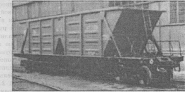 В Украине построены и эксплуатируются на железных дорогах вагоны-хоп-перы (рис 1-3) для перевозки угля с осевой нагрузкой повышенной до 35 т. Они используются для перевозки сырья и продукции между промышленными предприятиями и по внутризаводским территориям. В них транспортируются грузы, имеющие температуру до +800°С - чушковый чугун, слитки, слябы, а также сыпучие металлургические грузы, тяжеловесная обрезь, медная руда, рулонная сталь и др. Конструкционная скорость на промышленных путях - 80 км/ч.