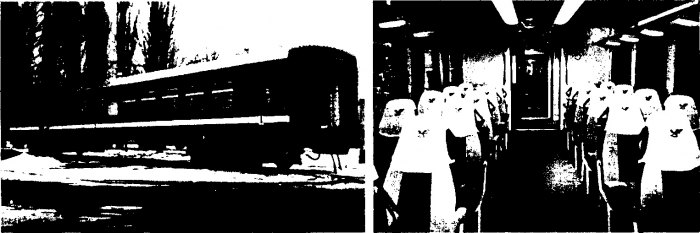 Рис. 1-23. Прицепной вагон: a-общий вид, б-интерьер.