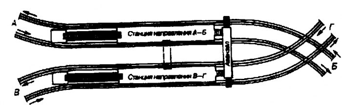 •из двух станций с совмещенным движением, расположенных в одном уровне параллельно одна другой;