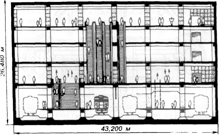 Объединенные пересадочные узлы. Прежде всего к этому типу пересадочных узлов следует отнести двухъярусную односводчатую станцию «Спортивная» Санкт-Петербургского метрополитена (рис. 6.31).