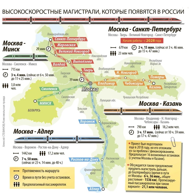 Приоритетным направлением реализации проекта создания высокоскоростных и скоростных магистралей в России является