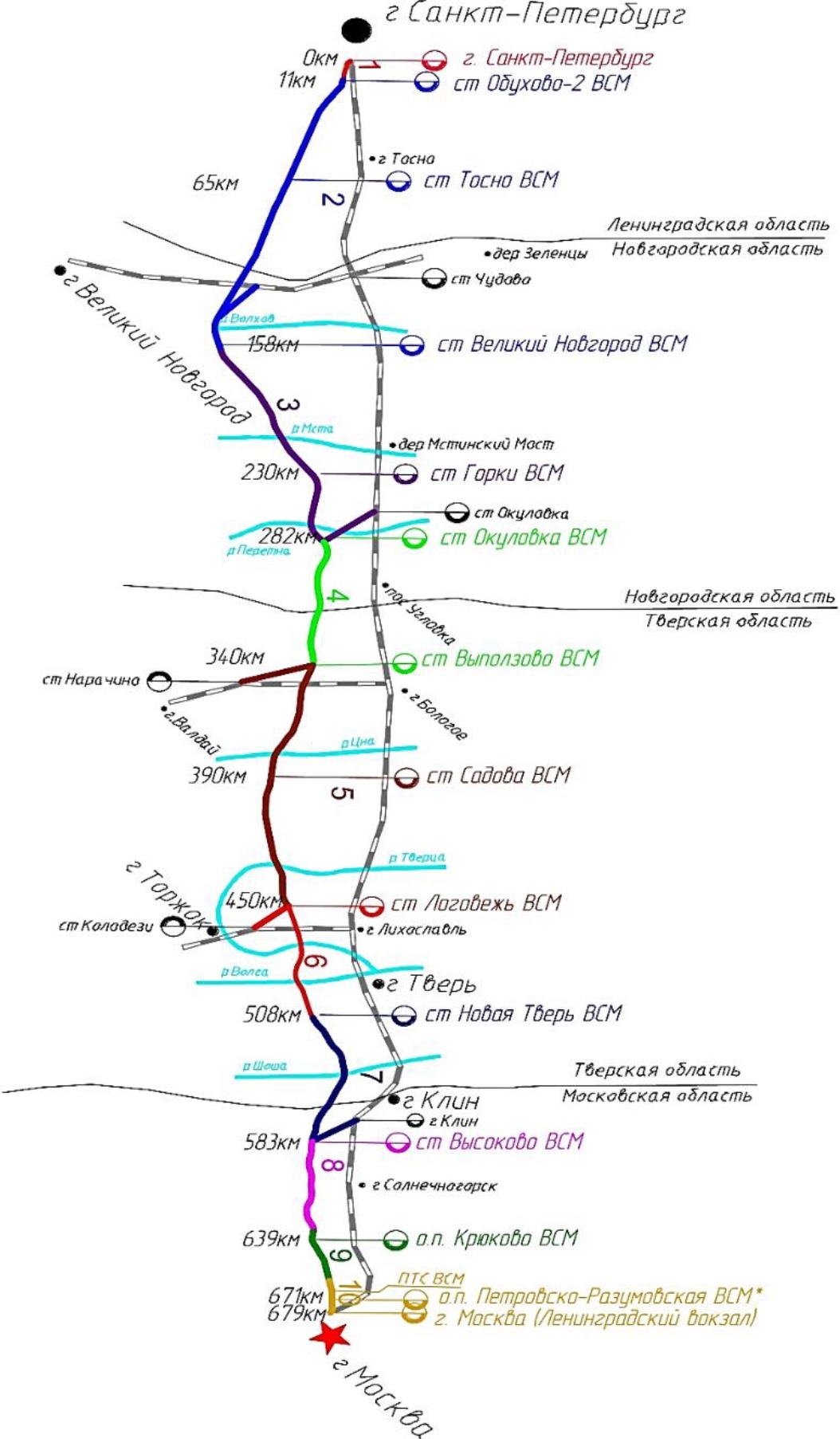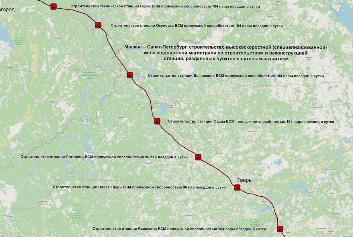 Высокоскоростная магистраль Москва — Петербург будет иметь следующие станции:
